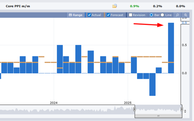 (more…)On rare occasions, I’ll actually think of something smart and insightful to say, and I stumbled upon one of those instances during my tastylive broadcast. In mentioning that the PPI numbers would be out soon, I off-handedly remarked that even though the CPI numbers showed no inflation, perhaps the PPI numbers would come in hot since they are further up on the supply chain and might be affected by the tariffs first. It was just a throwaway line, but lo and behold, the numbers just came out and the PPI is almost FIVE TIMES the anticipated value. How’s 10.8% inflation sound, everybody?