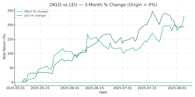Since then. Nuclear-adjacent names have reminded everyone why this theme matters: OKLO (OKLO -0.18%↓) and Centrus Energy (LEU 5.25%↑) have both ripped recently, reflecting investor appetite for the “more electrons, more reliability” trade.