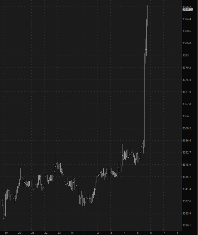 With all this going on, gold is absolutely spasming higher.