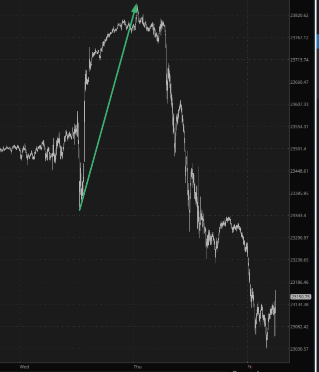 Even tech stocks, which were supercharged by the META/MSFT results, have completely fallen limp on their wedding night. I aggressively shorted the QQQ on Thursday’s open, and I continue to hold that short.