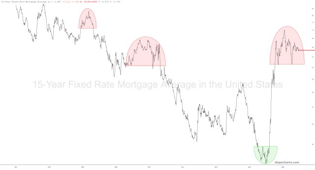 It seems most likely that, a year from now, interest rates will be substantially lower based on these nearly-completed reversal tops.