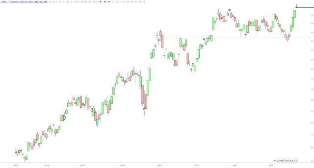 Miners Reversal By Tim Knight - 6 months ago (07, Aug 2025 7:40:19 AM) I think precious metals miners are about to turn lower. Below are GDX and GDXJ, respectively. « Prior Next » https://slopeofhope.com/2025/08/miners-reversal.html Miners Reversal In order to comment on this blog, you must have JavaScript installed and enabled. « Prior Next »