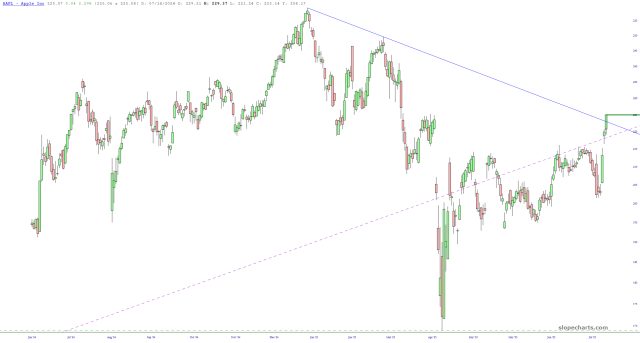 I guess Tim Cook’s 24-karat gold gift to El Presidente worked its magic, as the stock has vaulted over its descending trendline.