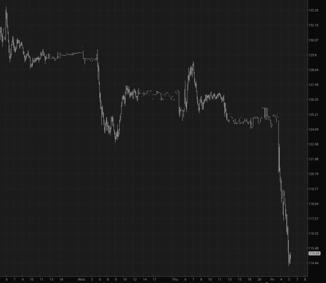 This action-packed week looks like it will be ending not with bang, but a whimper. Pre-open, the equity futures are a mix of red and green, mostly by a few hundredths of a percent, with the /NQ becoming increasingly quiet.