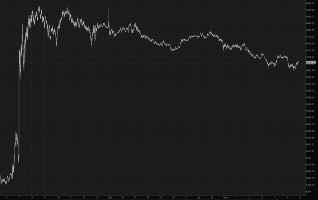 Although, to be fair, most of the this-will-fix-everything rally is intact from Friday morning, as the /ES shows. Still, I’ll gladly take it, since futures were actually UP at some points on Sunday.