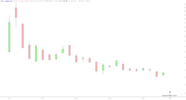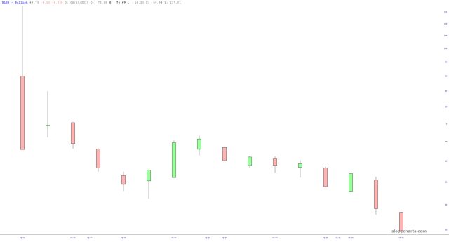 When I travel, most of the billboards I see are personal injury lawyers and pleas to not have an abortion. In this area, the billboards are all about A.I. I’m talking 95%. It’s insane. I saw one yesterday which wasn’t quite A.I. but was definitely tech-related. It declared boldly, “The Future is Bullish” and it showed the ticker symbol BLSH. I decided to check out the chart and, yep, here we are: