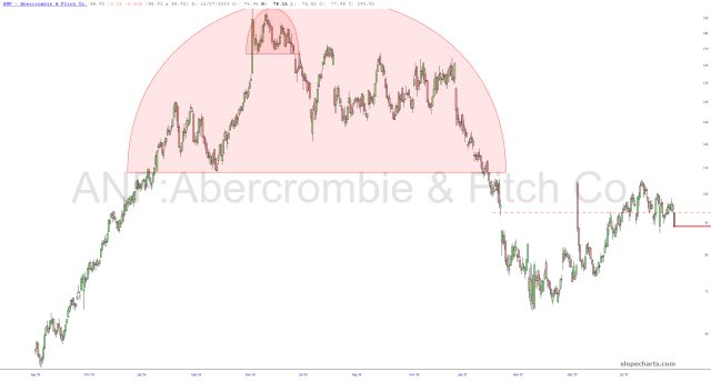 Even while the NQ is once again at the highest level in human history, 15 out of my 20 short positions are down today. Here are five in particular I wanted to highlight: