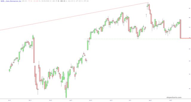I had tried shorting Axon Enterprise (AXON, which was TASR many years ago) but it never worked out. It’s a shame, because NOW it’s really getting hammered! For those not aware, this is the maker of tasers and bodycams for law enforcement, and the assumption was that they’d be printing cash since Trump wants so many people tasered.