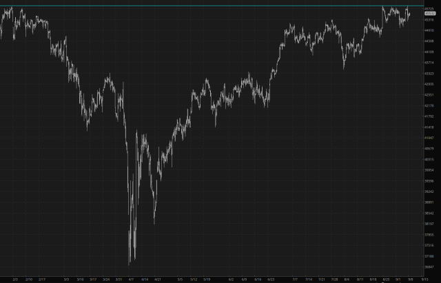 Good morning, and welcome to a new week. Nice as it would be to report something exciting, we remain in Meander Mode, with the /YM at this moment up 0.17%. it spent the entire night drifting around listlessly, doing next to nothing. Meh.
