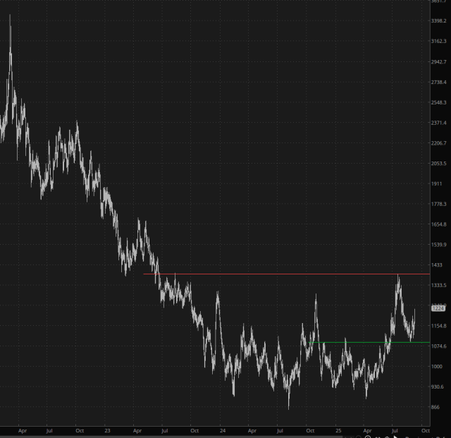 Looking at many years of history, it seems to me that palladium has a solid history of establishing strong bases and then running for an extended period. I would further argue that this most recent base is larger and better formed than its predecessors.