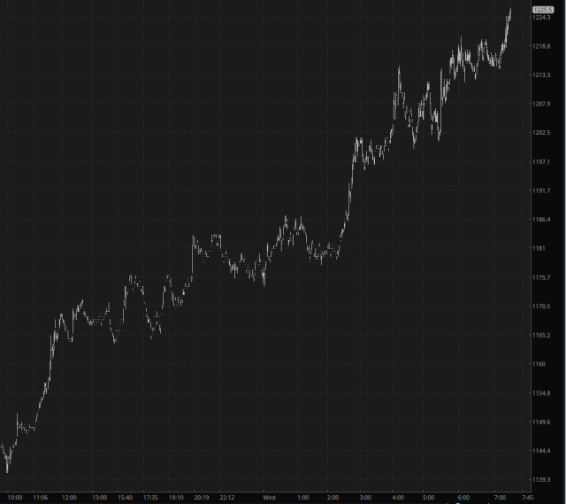 Well, a minute bar chart is all well and good on a strong day, but let’s get real here and look at something more long-term. Below is the daily chart of the /PA, the palladium futures. The bullish base is very well defined. I would argue this is an inverted head and shoulders pattern with a measured move going up to $1917.