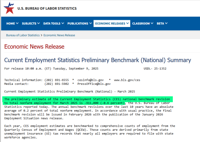 The BLS just released their latest revision (AKA the original data was dead wrong and they’re correcting their mistake), and it’s a new record: 911,000 jobs that were supposed to be created were never created. Again, this is an unprecedented level of using a pencil eraser.