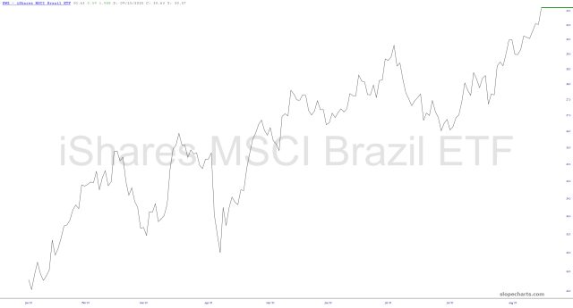 My main point is that the worst-performing of these markets above is the one in black, which is the SPY. A rising tide lifted all the boats, but it lifted those of our foreign competition the most.