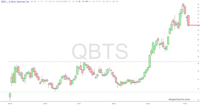 Even though the market was rocketing higher all-day Monday, the sector I mentioned before we opened that was looking vulnerable – – quantum computing – – continued to take it on the chin. I’m not sure why the public is suddenly turning their back on this highly speculative sector, but it’s ugly: