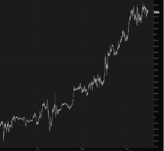 Celebrated chartists such as I are able to look at the chart below and draw conclusions from it without assistance from any human or AI system. The chart is crude oil and the trend………is UP.