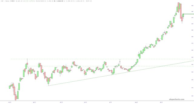 OK, I’m going to throw some shade directly at myself. Tim Always Chickens Out. There’s your TACO right there. Because early today, I took four-figure profits on PALL and am done with it for now. Why? What about the amazing long-term pattern?