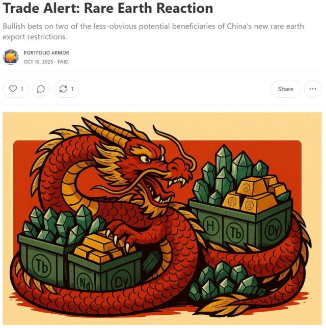 We expect progress before the previously scheduled Trump–Xi meeting (at APEC later this month)—maybe even a positive Trump headline before Monday. If nothing materializes and markets drift lower, we’ll look to add selectively considering what’s on sale, including high-quality China ADRs, using our standard IV-harvesting, defined-risk structures.