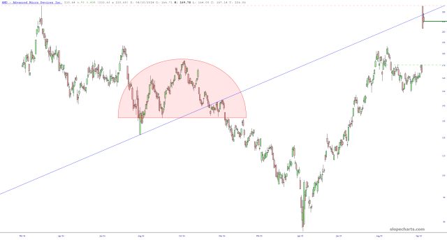 I am highly confident that AMD will wither back down to its gap (at least), just as I’m sure that a similar breathless mega-rally in ORCL (September 10th) will wither back to its own gap.