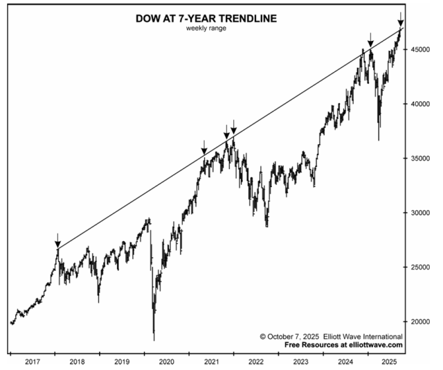 Our friends at Elliott Wave sent out a late-breaking update to their charts, and they are absolutely beautiful. (They’ll be EXTRA beautiful if they wind up actually meaning anything because, bless ’em, the EWI lads do amazing work, but sometimes the chart, no matter how gorgeous, isn’t as predictive as one might hope; still, hope in the bearish breast springs eternal).