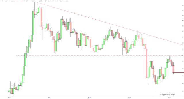 Only a couple of days ago, I predicted Ripple ($XRP) would fall away from its right triangle pattern.