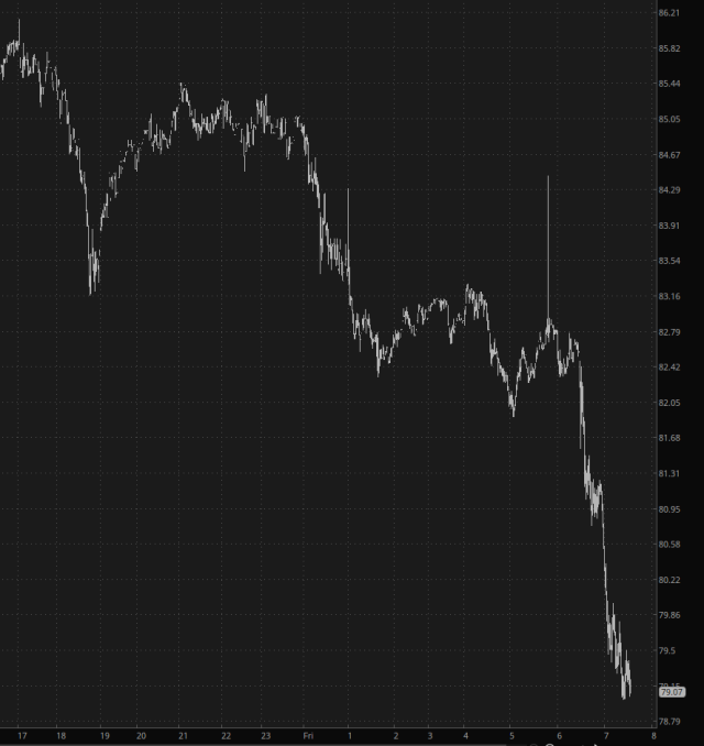 Whereas palladium, which I’ve been screeching at myself about mercilessly ever since I sold it, has swan-dived over 7%.