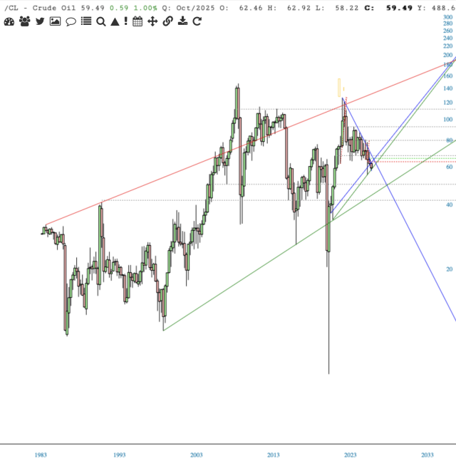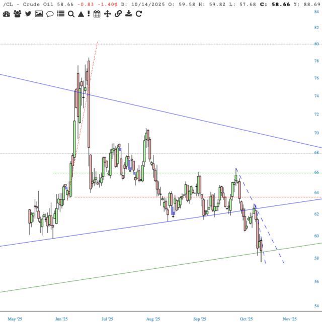 This daily /CL chart shows which side of the trade you’re on via trendline levels of support and resistance.