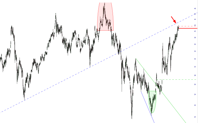 Broadly speaking, the FXI has hit major resistance and is just beginning its repulsive fall.