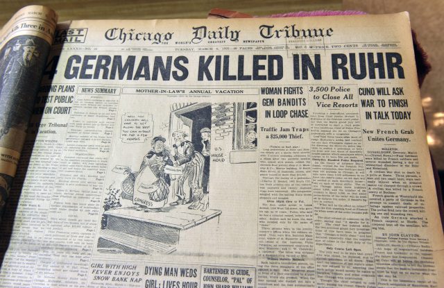 “France Invades Ruhr.” (Chicago Daily Tribune front page, Mar 6, 1923)