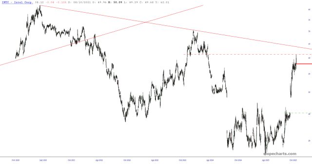 The longer-term chart still shows the truth: Intel is a dog, and it has achieved nothing more through all this wasted government largesse than yet another lower high.