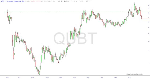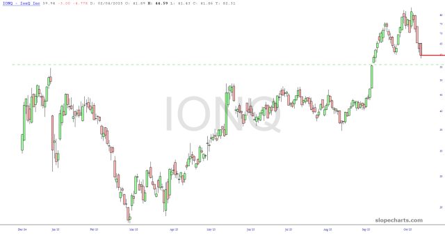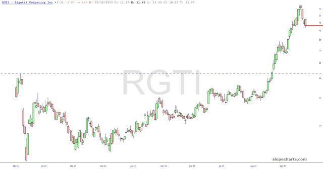 Even though the market was rocketing higher all-day Monday, the sector I mentioned before we opened that was looking vulnerable – – quantum computing – – continued to take it on the chin. I’m not sure why the public is suddenly turning their back on this highly speculative sector, but it’s ugly: