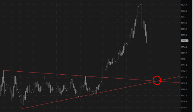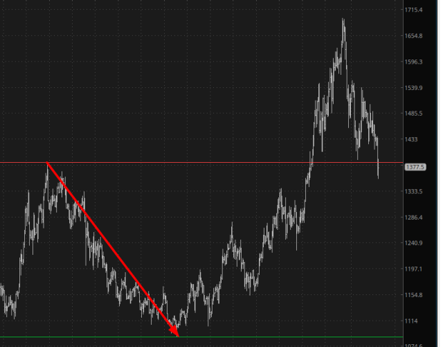 As for precious metals, I’m relived to see they continue to take a drubbing. As of the composition of this post, gold futures are down 2% and palladium futures are down over 3%. Wouldn’t it be just picture perfect if /GC fell to that apex? That feels about right to me!