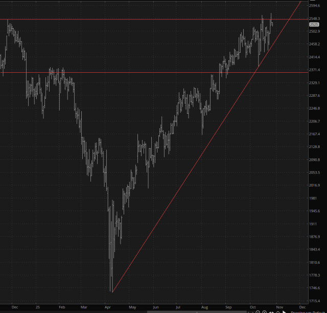 It is still in an unbroken uptrend since April 7th, however, and it needs to break the trendline to cause any doubt to enter the understandably arrogant heads of the bulls.