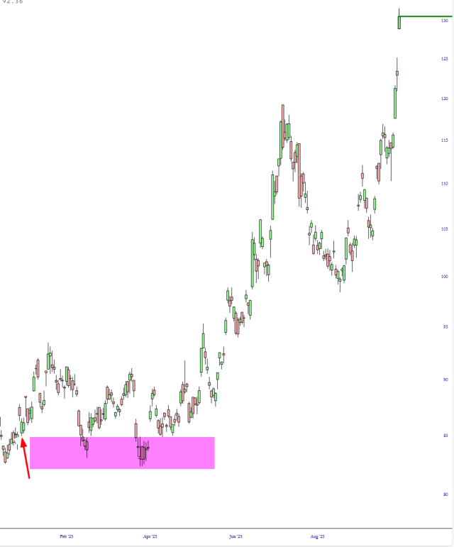 The magenta zone marks where it would have been a LOSS, but more importantly, this sucker spent MONTHS just screwing around, wiggling up and down, being totally indecisive. Finally, starting about five months after my post, it put its rocket boosters on. It also had about 20% of its flesh sliced off before rocketing with even more strength. Maddening!