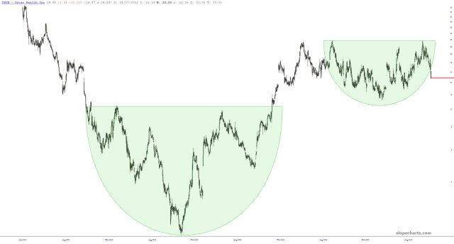 There’s precious little to cheer bears this morning, considering all the green on the screen, but I would point out one exception: Centene (CNC), the so-called healthcare provider: