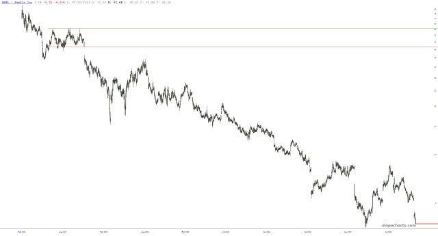 At least SOMETHING with a bearish pattern is ignoring the noise! I recommended this one a couple of weeks back. It’s a beautiful right triangle top.