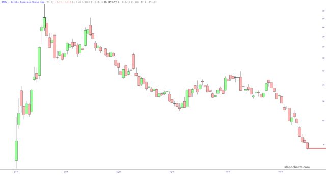 Bessent wants you to think the stablecoins are going to be the cure for our $38 trillion of national debt. Uh-huh. I’ll just mention that Circle Internet (CRCL), which is all about stablecoins, is down 75% from its recent lifetime high.