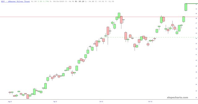 Precious metals had a terrific day, led by silver, which blasted to never-before-seen highs (nominally speaking).