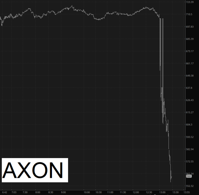 More impressive is my short is AXON, which is doing an absolute swan dive. Everyone figured Trump would just jizz billions of dollars all over these guys, and they pumped the stock to $885 in August. I shorted it last week, and although the short was already profitable, it is absolutely collapsing after-hours on an earnings wipeout. The Trump jizz couldn’t save it.