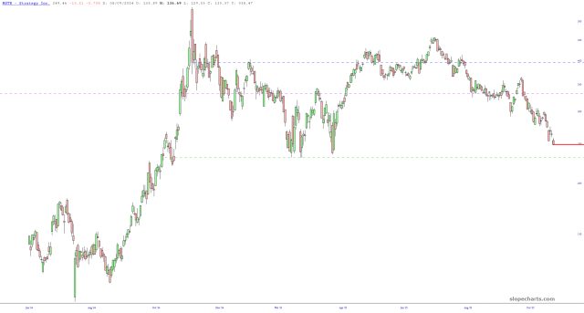 In turn, Strategy (MSTR) continues to wither away, with a greater than 50% loss since its peak last November 21st. Go, Michael, Go!
