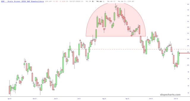 I did short a couple of large ETFs in size late on Friday with good results so far. There’s homebuilders, symbol XHB: