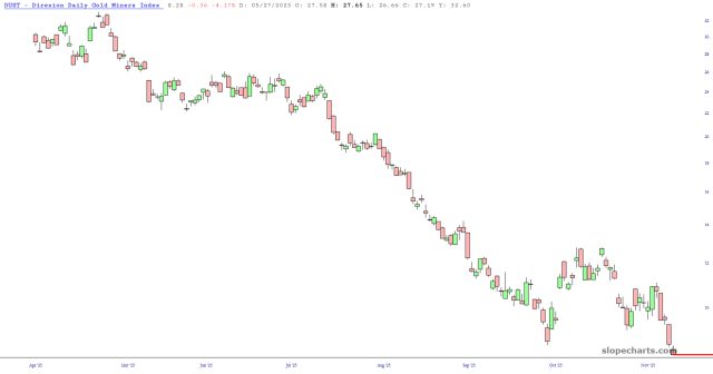 In turn, bearish-on-miners fund DUST reached a new lifetime low.