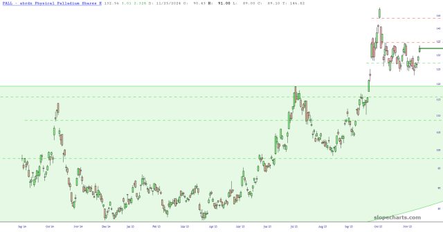 For me, my stake in precious is a huge PALL position, which had a respectable 2.22% gain for the shortened session, although it still has to work to do before really being “in the clear”.