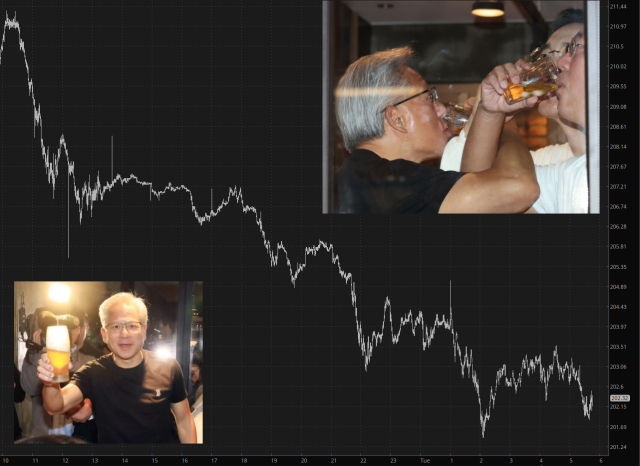 Meanwhile, across the ocean, Jen-syun Huang was getting shit-faced in celebrate a new high for his own Nvidia, worth well more than $5 trillion. For now.