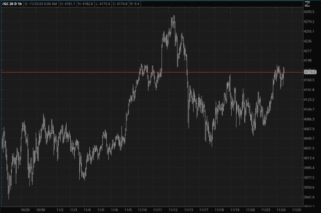 Gold is nominally higher by $44, but it’s struggling a bit around that $4175 line. As you know, my fingers are crossed for the strong precious/weak equities bifurcation instead of all assets being tethered together.