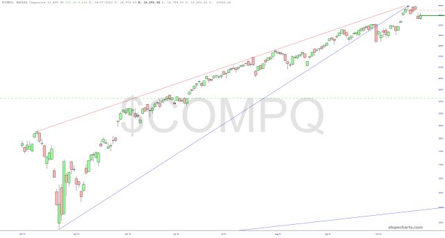 On Monday, I did a lengthy premium post stating what marvelously uniform the wedge patterns in the indexes were, and how powerful a position the bears might be in (“I’ve never seen such gorgeous unanimity among such a wide variety of stock indexes“). On Tuesday, the market fell hard, agreeing with that assessment.
