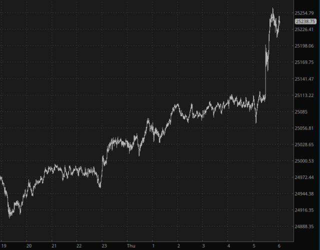 Yet another delayed economic report came out today – – this time, the CPI – – and it was unexpectedly cool compared to expectations. Based on this encouraging news, bonds and stocks ripped higher, with the /NQ, for example, up almost 400 points before the opening bell.