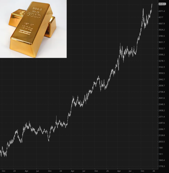 Happy Boxing Day, everyone! The equity markets are absolutely thrilling pre-market: the S&P 500 futures are up 0.01%, for example. Actually, the only real action is in the world of precious metals, as the debasement trade continues to thrive. What has happened over the past couple of years is jaw-dropping, and like I keep saying, this isn’t happening for no reason. There are fundamental changes taking places that I think won’t be clear until years in the future: