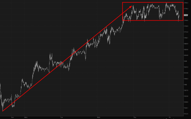 I would also note that for what feels like the first time this century, palladium is actually down a little. The unrelenting rally has finally taken a pause, as the price action has morphed from “not a downtick in sight” (arrow) to equilibrium.