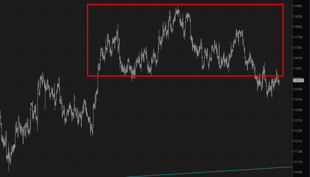 The /NQ has hammered out a steady series of lower lows and lower highs.