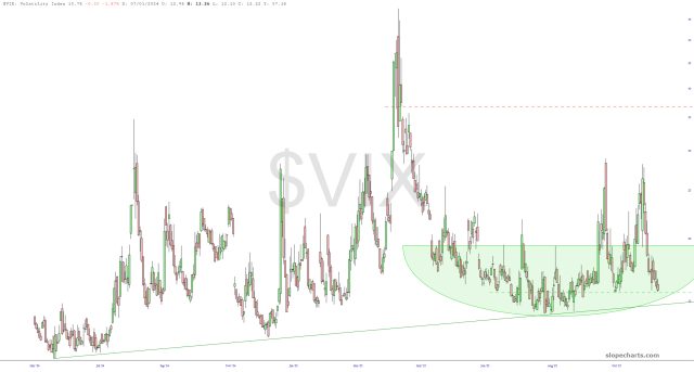 Lastly, volatility is barely registering a pulse. This sucker is just DYING for another launch into the mid-30s! All it needs is a reason.